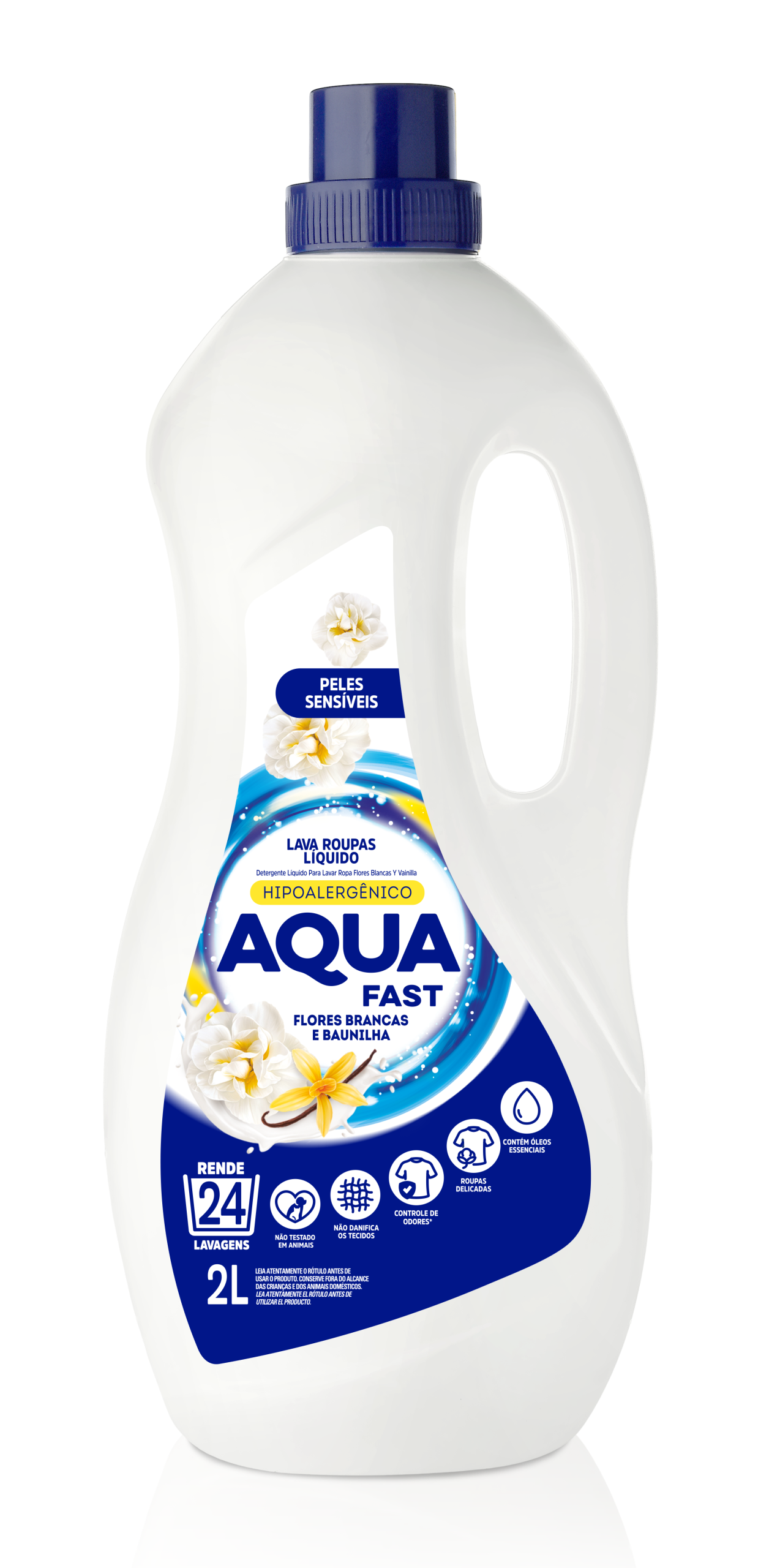 El lava ropa líquido para ropa Aquafast tiene un excelente poder de limpieza y remoción de manchas, además de dejar las prendas con una fragancia agradable. Su fórmula permite la aplicación directa y la línea completa incluye versiones adaptadas a las necesidades de cada consumidor. Todas las versiones son hipoalergénicas y cuentan con tecnología antiolor.